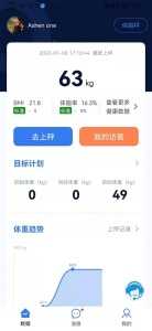 多维度身体检测。通过智能体脂秤获取多项身体指标,包括体脂率、肌肉质量和水分等,全面了解自身健康状况。
