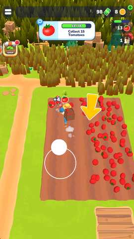 在购买设备后,继续移动角色收集农场内的各种资源和物品,这些资源是后续生产和交易的重要基础。
