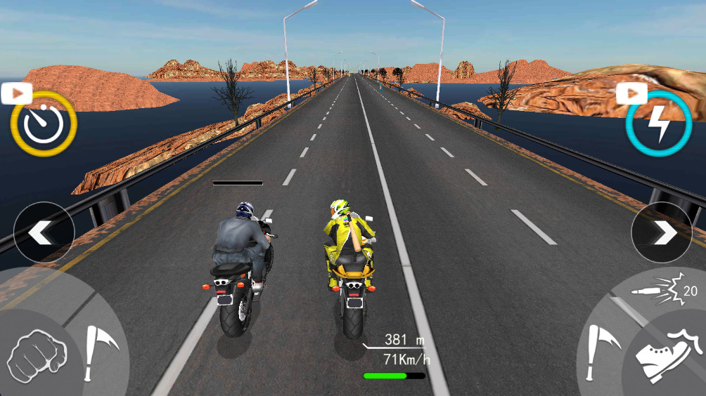 在比赛中,利用左右两侧的按键进行操控,灵活躲避障碍物并攻击其他车手,展现你的驾驶技术和战斗策略。