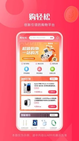 购轻松app是一款专注于满足消费者购物需求的软件,提供丰富多样的商品选择,包括手机数码、珠宝黄金等多种品类,涵盖智能手表、蓝牙耳机、耳饰、手镯等热门商品。通过购轻松购物平台轻松找到自己心仪的商品,享受便捷的购物体验。平台推荐优质的商品资源,还提供正品保障和贴心的售后服务,确保购物过程的安全与安心。