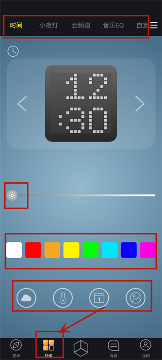 4、登录成功后,在频道页面即可设置时间及各项显示参数。
