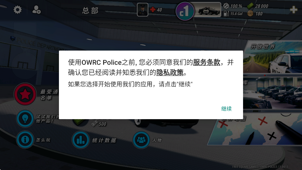 进入开放世界后,点击上车以开始你的冒险,随后开启剧情,驾驶警车完成各类任务,追捕逃犯。