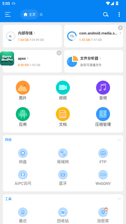 RS文件管理器app是一款极具实用性的安卓文件管理与网络传输软件,为用户提供便捷高效的文件处理方案。支持本地文件的管理,还能够连接网络存储和进行局域网文件传输,满足不同用户的需求。通过软件,轻松管理手机中的各种文件,享受压缩、解压、加密保护及回收站等多项高级功能,确保文件安全无忧。软件支持主流云盘的登录,使得本地与云端文件的管理变得更加高效,极大提升了文件的传输与共享体验。