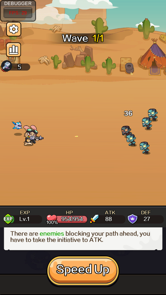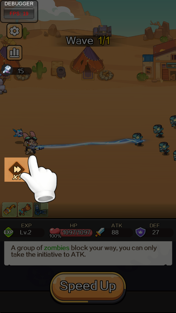 在战斗中,通过点击屏幕控制兔子自动攻击敌人。注意积蓄怒气,当怒气值达到一定程度时,长按屏幕可以释放强力攻击。
