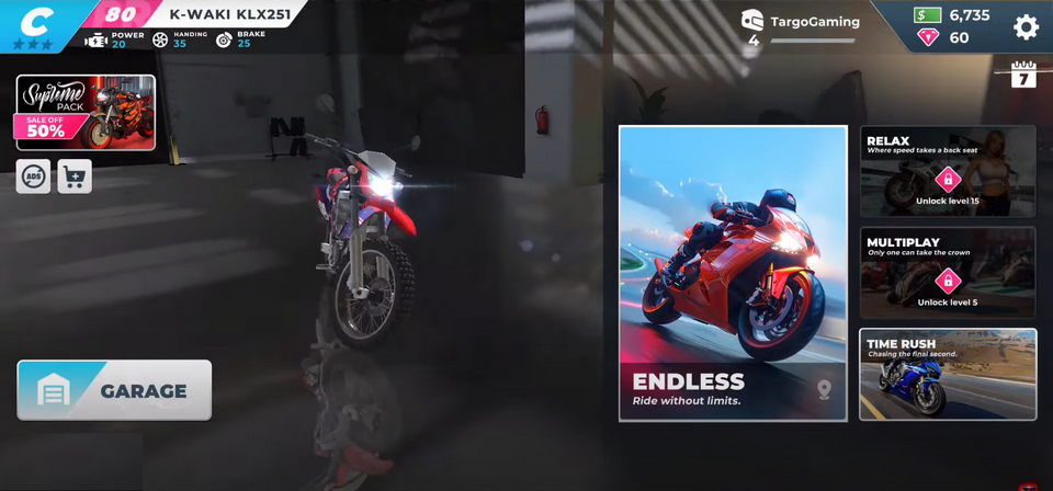 多样的摩托车选择,能够根据自己的驾驶风格选择适合的车辆,每种摩托车都有独特的性能和外观,提升了个性化体验。