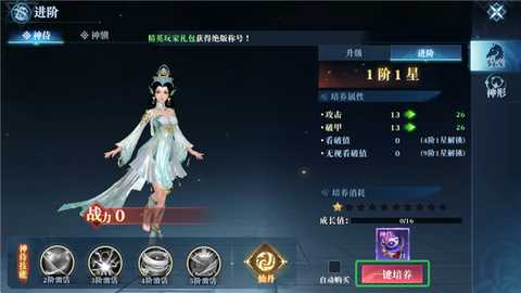 对神侍进行进阶,不仅能提高其攻击和破甲等数值,还能解锁并激活新的技能,使其在战斗中发挥更大作用。