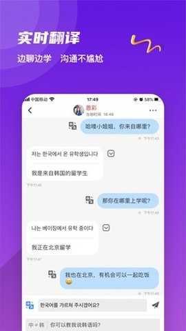 提供即时翻译服务,帮助用户与来自不同国家的人进行实时聊天,打破语言壁垒。