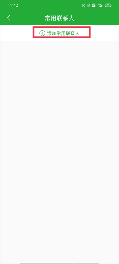 进入常用联系人界面后,会显示之前添加的所有常用联系人信息列表,点击红色框标注的“+添加常用联系人”按钮。