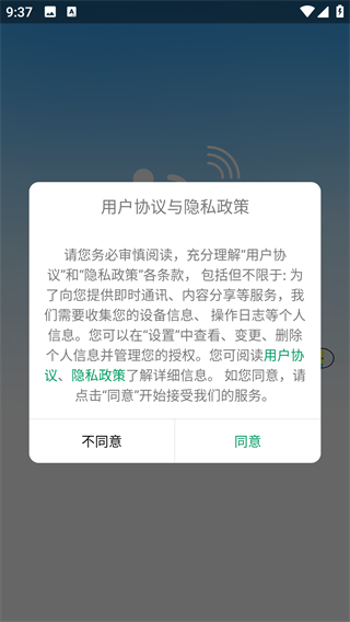在本站下载并安装欧米智能骑行软件后,首先需要阅读服务协议和隐私政策,点击同意后即可进入下一步。