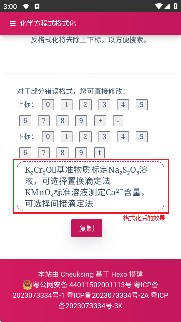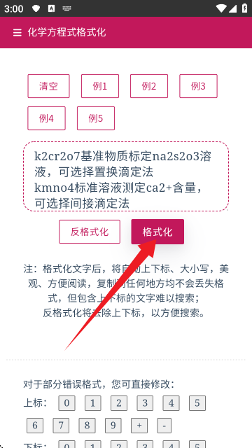 4:以“化学方程式格式化”为例,进入工具界面后,在输入框中输入化学方程式内容,点击“格式化”即可将其转换为标准格式。