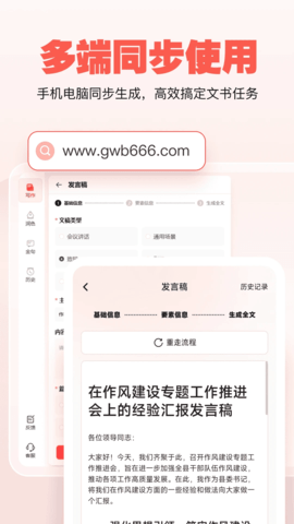 智能仿写:支持对已有文稿进行智能仿写,用户只需输入原文,系统即可生成新的文稿,保持原意的避免抄袭。