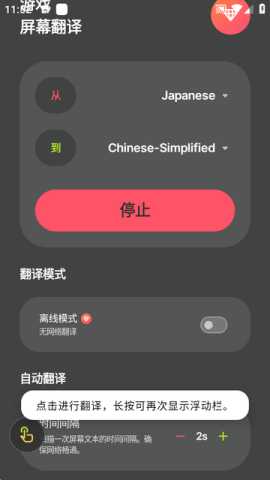 自动翻译功能:无需手动干预,会自动翻译预先选择的区域,随时开始或暂停此功能,灵活应对不同需求。