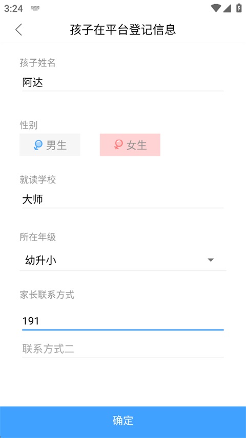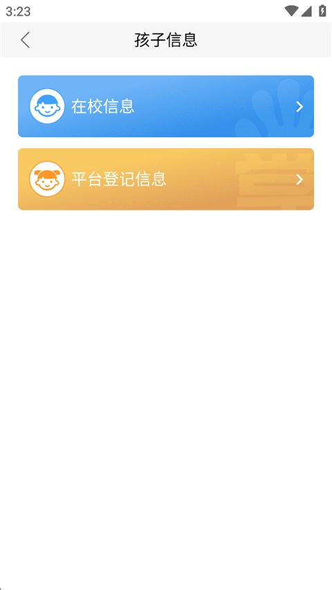 3、点击【平台登记信息】,开始填写孩子的相关资料。