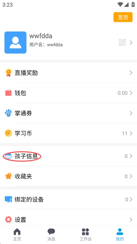 1、打开掌通宝家长版App,点击底部导航栏的【我的】。