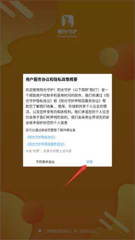 1、首次启动时,系统会显示用户协议和隐私政策,阅读后点击同意按钮进入主界面。