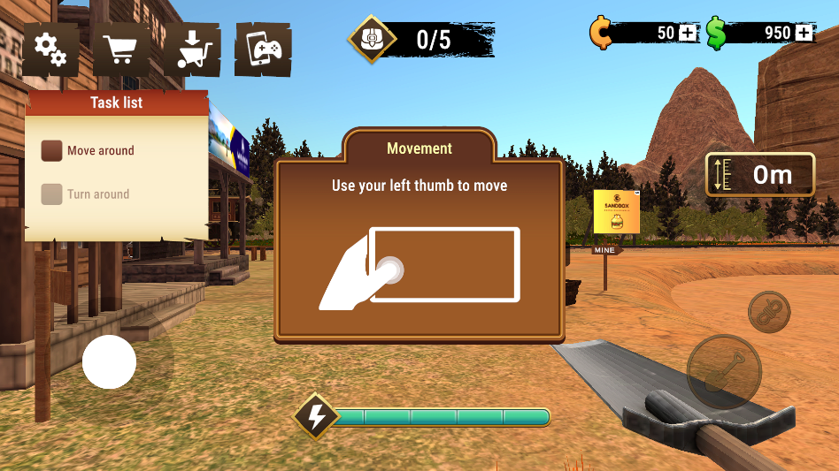 进入游戏后,将接受新手教程,学习如何控制角色移动,左侧的虚拟摇杆用于操控角色前进、后退和转向。