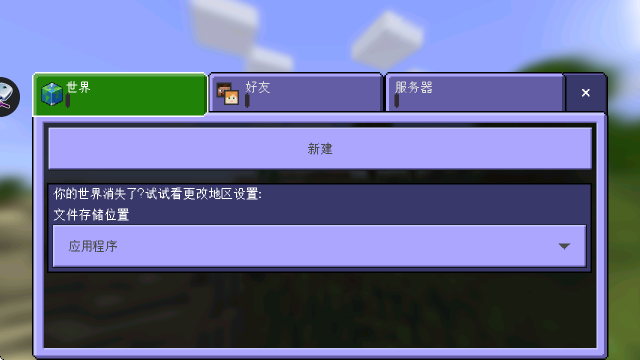3. 进入“游戏”板块的“世界”界面,可以选择“新建”世界,也可以在“文件存储位置”下拉菜单中调整游戏数据的存储路径。