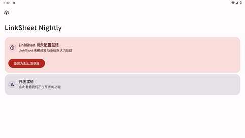 在本站下载并安装LinkSheet Nightly后,打开软件,您会看到简洁的主界面。根据提示,您可以选择设置默认浏览器的选项,就能开始管理链接的跳转。