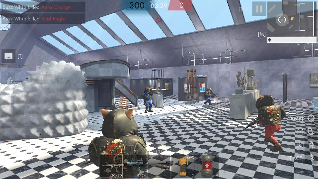动态战斗场景:游戏设定在多样化的环境中,如城市巷道和艺术展厅,需利用场景中的掩体与地形元素进行移动和射击,创造出多变且富有挑战性的对战体验。