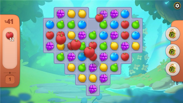 消除谜题:包含丰富的消除元素,需要通过调换水果的位置来消除相同类型的水果,进而赢取奖励,帮助花园恢复生机。每个关卡都充满挑战,需精心安排每一步的策略。