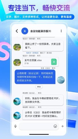高效远程交流:无需面对面即可实现远程沟通,大幅提升跨地域、跨时间的沟通效率,降低沟通成本。
