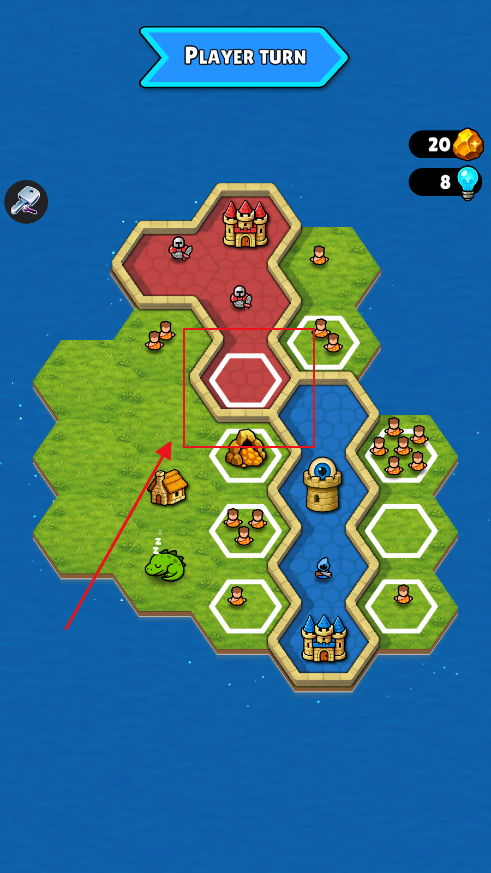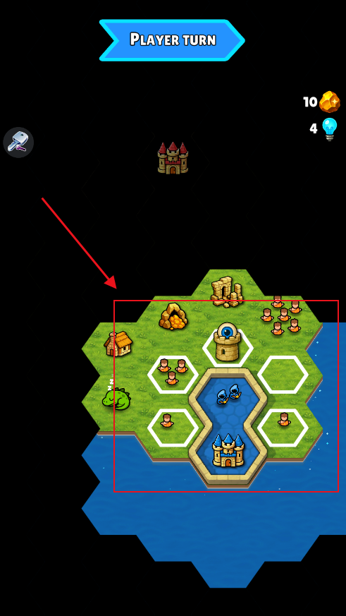 需要点击play进入游戏界面,选择一个白色框作为自己城堡的初始位置。