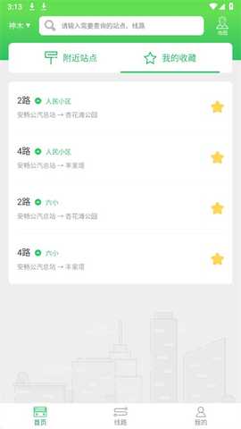 对于常用的线路可以点击线路查询页面右边的收藏按钮(或线路详情页左下角收藏按钮),点击确定收藏后,该线路将会显示在app的首页界面,下次使用直接查看,不用通过搜索查询,大大节省了您的时间和流量。