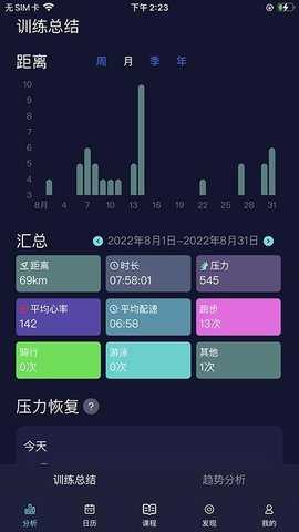 运动数据统计:系统会自动统计用户的所有训练数据,并以图表形式展示,方便用户了解各项运动指标。