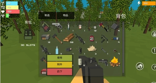 当你在军事基地里拿到手电、把柄等武器配件后,打开背包并选中武器,此时武器的下方会出现“附件”选项。