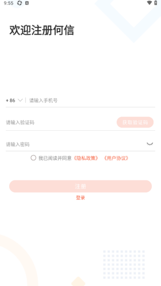 如果是新用户,需要在注册页面输入手机号、验证码和设置密码,点击注册完成账户创建,轻松开启社交之旅。