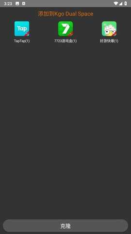 在主界面中,看到添加软件选项,点击后选择需要分身的软件,系统会自动进行克隆处理,完成后可在主界面查看。