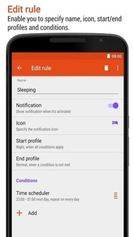 在本站下载并安装aProfiles后,打开并创建一个新的配置文件。在配置文件中选择需要的触发条件,如时间、地点或电池状态,方便后续的操作设置。