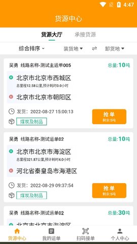 登录后,在首页找到货源信息模块,点击进入即可浏览到当前可用的运输任务,选择合适的进行接单。