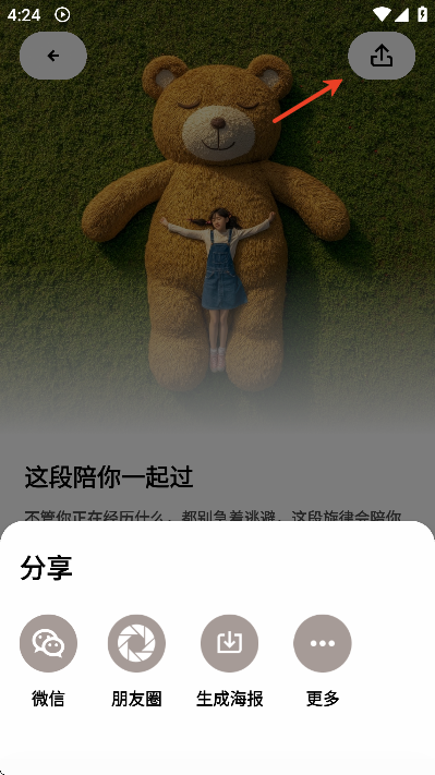 分享音乐: 点击屏幕右上角的分享图标,即可将音乐分享给您的朋友。