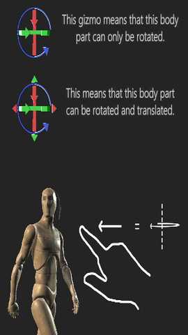 4、带有小箭头的gizmo意味着可以使用2个手指拖动手势来平移身体部位。