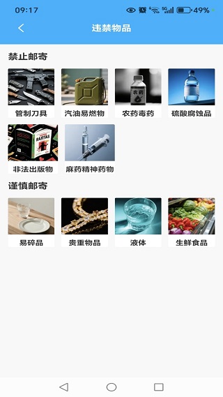 违禁物品查询: 提供违禁邮寄物品的详细信息,帮助用户在寄件时避免法律风险。