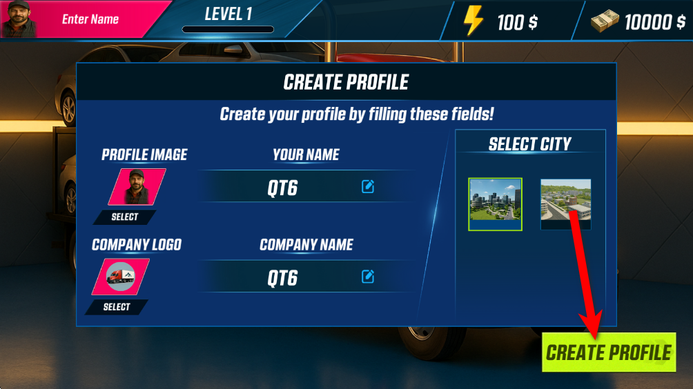 完成选择后,点击启动卡车,确保车辆处于良好的状态,检查油量和其他必要的准备工作。
