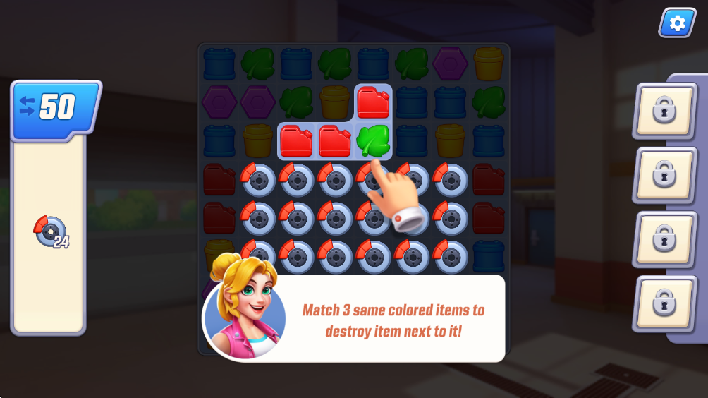 挑战性的三消玩法:通过三消解谜的机制,需要在限定步数内完成消除任务,获取改造所需的资源,挑战自己的智力与策略。