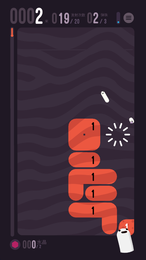 每个方块上都有数字,表示其血量,需要通过弹珠的反弹来消除这些方块,直到将所有障碍物清除为止。