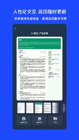 多端同步:支持云端同步,用户的简历能够在手机、电脑等多个设备上查看和编辑,打破设备限制,随时随地进行修改。