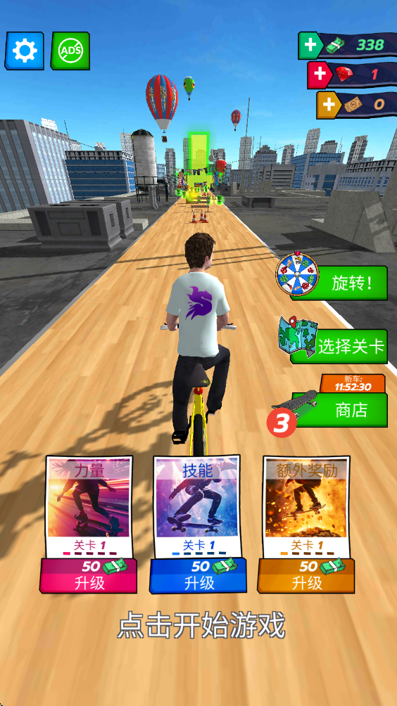升级与收集机制:可以收集金币,用于升级自身的能力,增强滑板的性能,从而在后续的挑战中获得更高的分数和更远的飞跃。