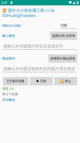 输入所需的目标图片大小,默认设置为100KB,用户可根据需求进行调整。