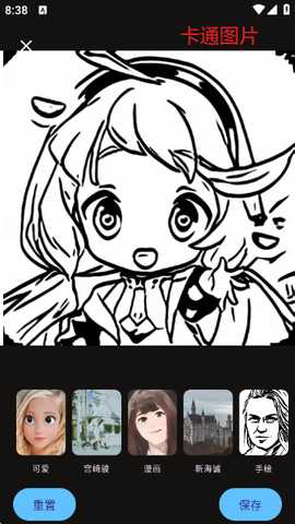 还可使用“卡通照片”功能,选择“可爱”“宫崎骏”“漫画”等风格,将图片转换为卡通效果,调整完成后点击“保存”即可。