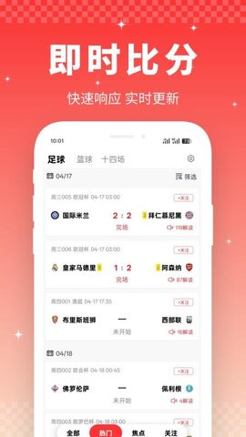 即时比分功能,能够实时跟踪比赛的得分变化,确保不会错过任何重要的比赛节点,提升观赛体验。