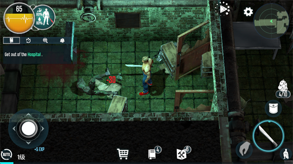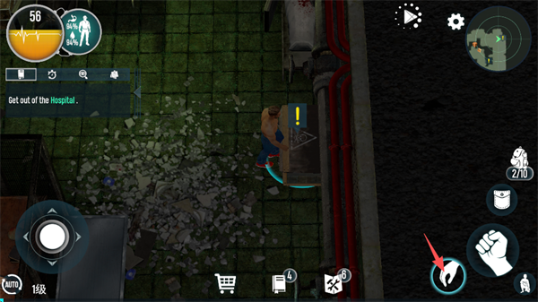 继续前进时,若遇到敌人,可以点击屏幕右下方的拳头进行徒手攻击,利用简单的攻击方式轻松战胜丧尸。