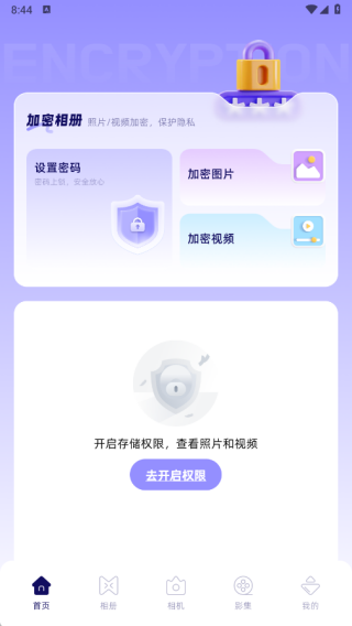 在首页找到加密相机功能,设置密码后,选择需要加密的照片或视频,点击加密即可确保您的隐私安全。