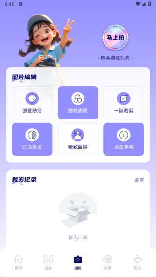 丰富的编辑功能: 内置的编辑工具包括创意贴纸、滤镜、裁剪等,对图片进行个性化处理,提升照片的视觉效果。