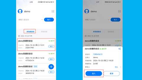 ① 在首页的会议ID输入框中输入会议ID,然后点击“加入”即可。