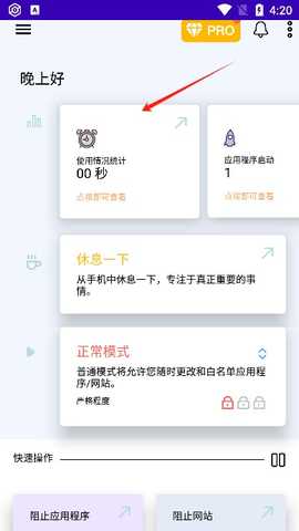 在主界面上找到使用时间统计模块,点击进入后即可查看各个软件和网站的详细使用时间,帮助了解自己的使用习惯。