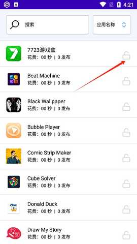 3、只需点击软件右侧的锁图标即可阻止该应用的使用。